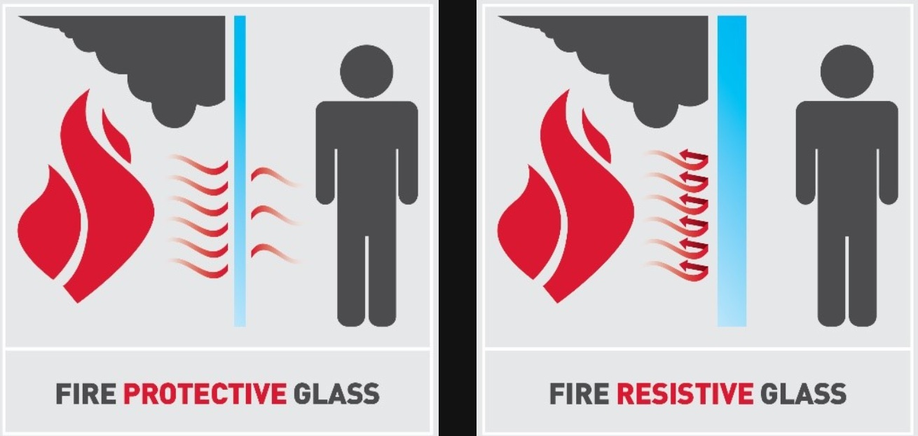Fire-protection-rated glass stops the spread of smoke and fire while fire-resistance-rated glass blocks smoke fire, radiant and conductive heat. Credit: Courtesy of TGP