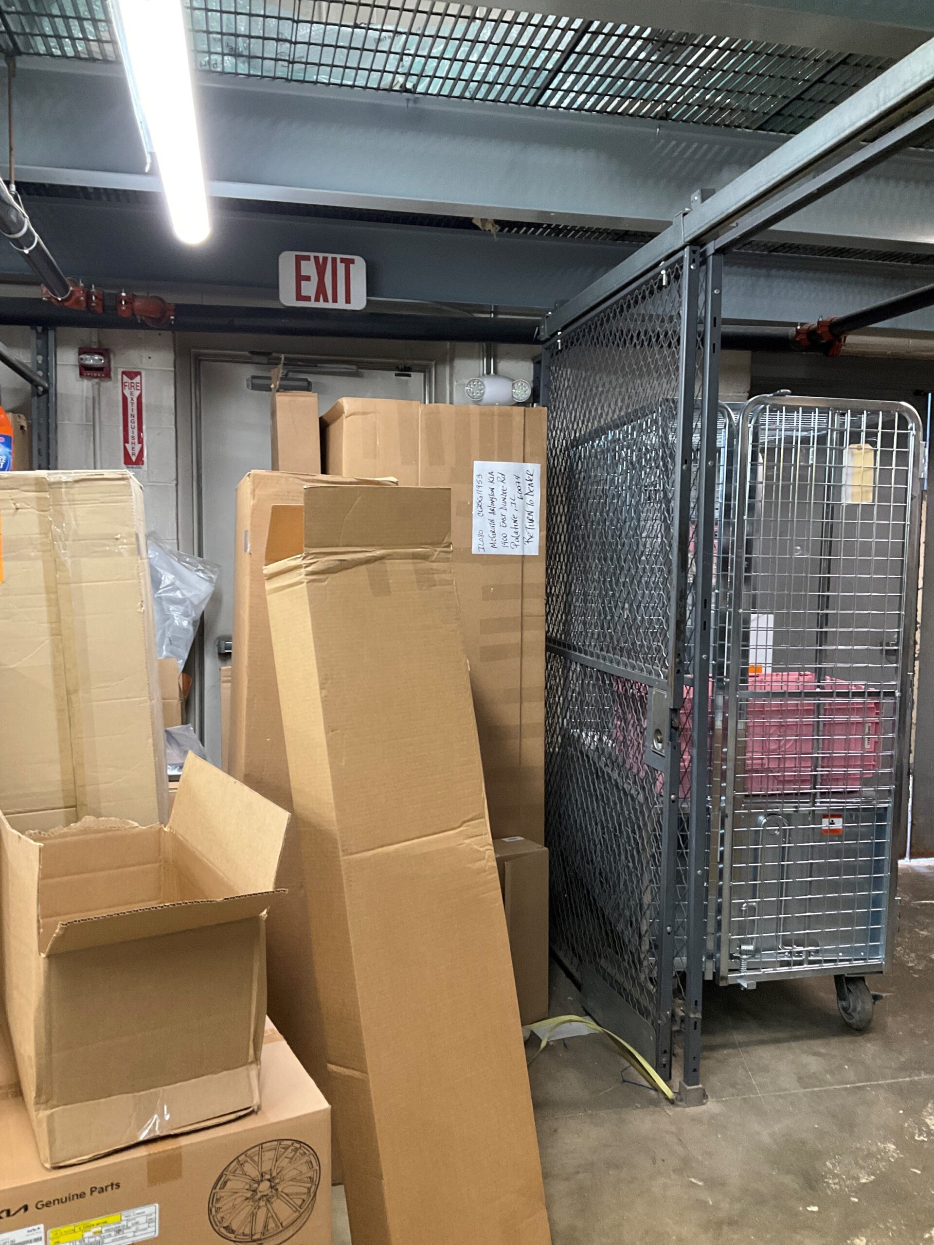 I received today’s Wordless Wednesday photo from Thomas Reinhardt, an AHJ. In addition to the obviously blocked exit, he also noted that the extinguisher and emergency lighting are blocked, and the exit light is not illuminated. And it looks like maybe a blocked pull station too?
