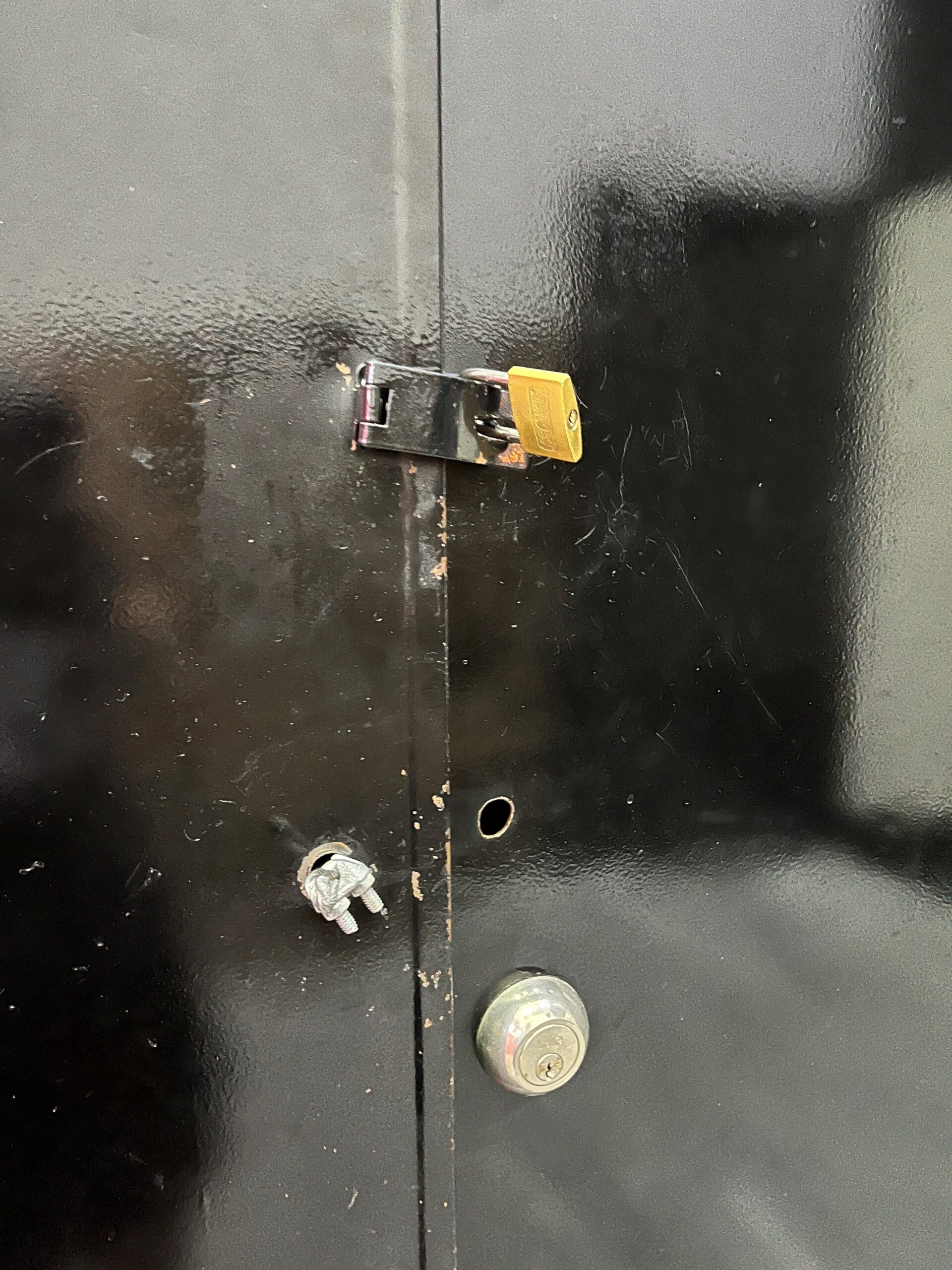 Even though this room (likely a storage or mechanical room) may not normally be occupied, this locking method would not comply with the US model codes. #wordless