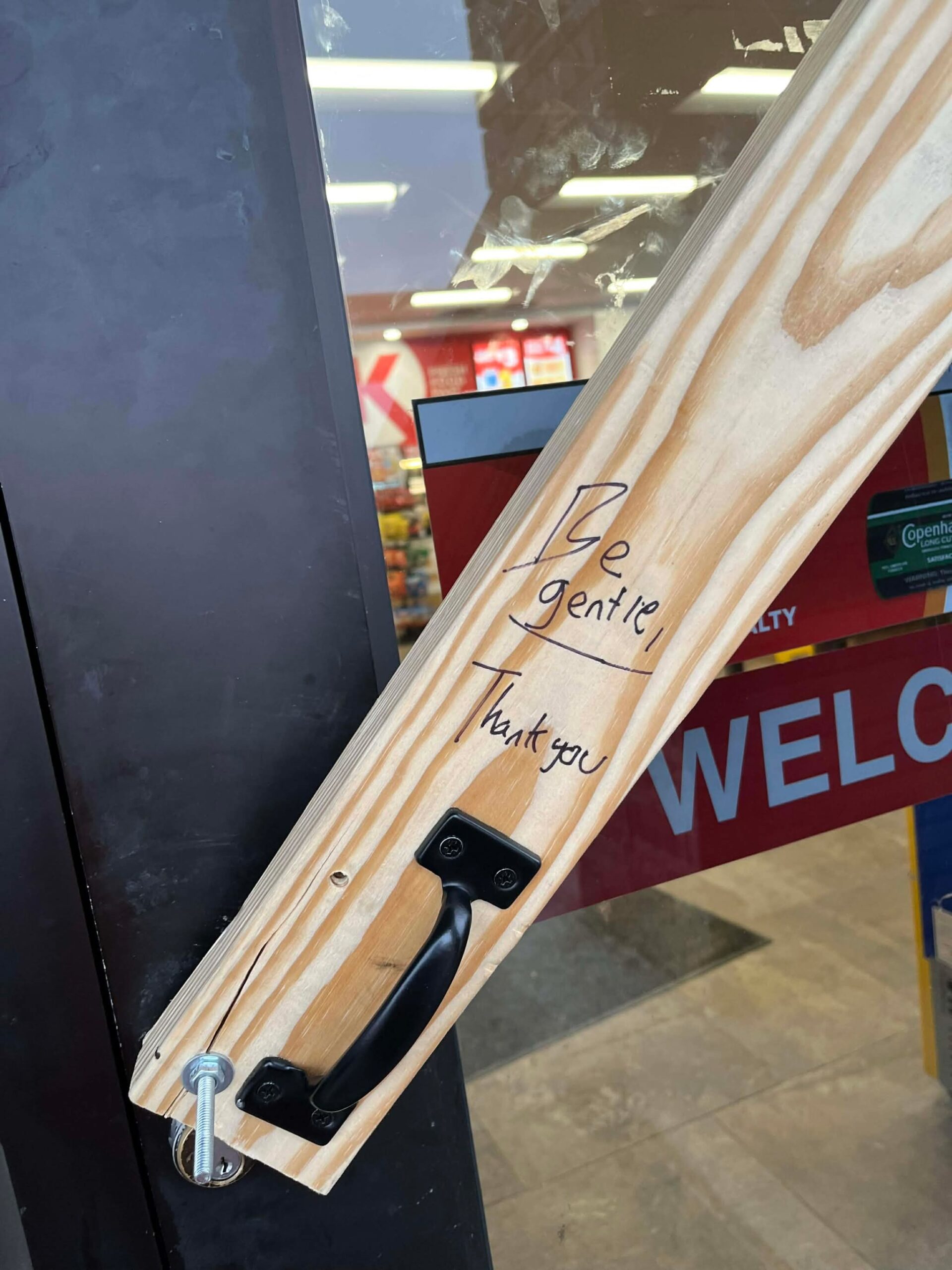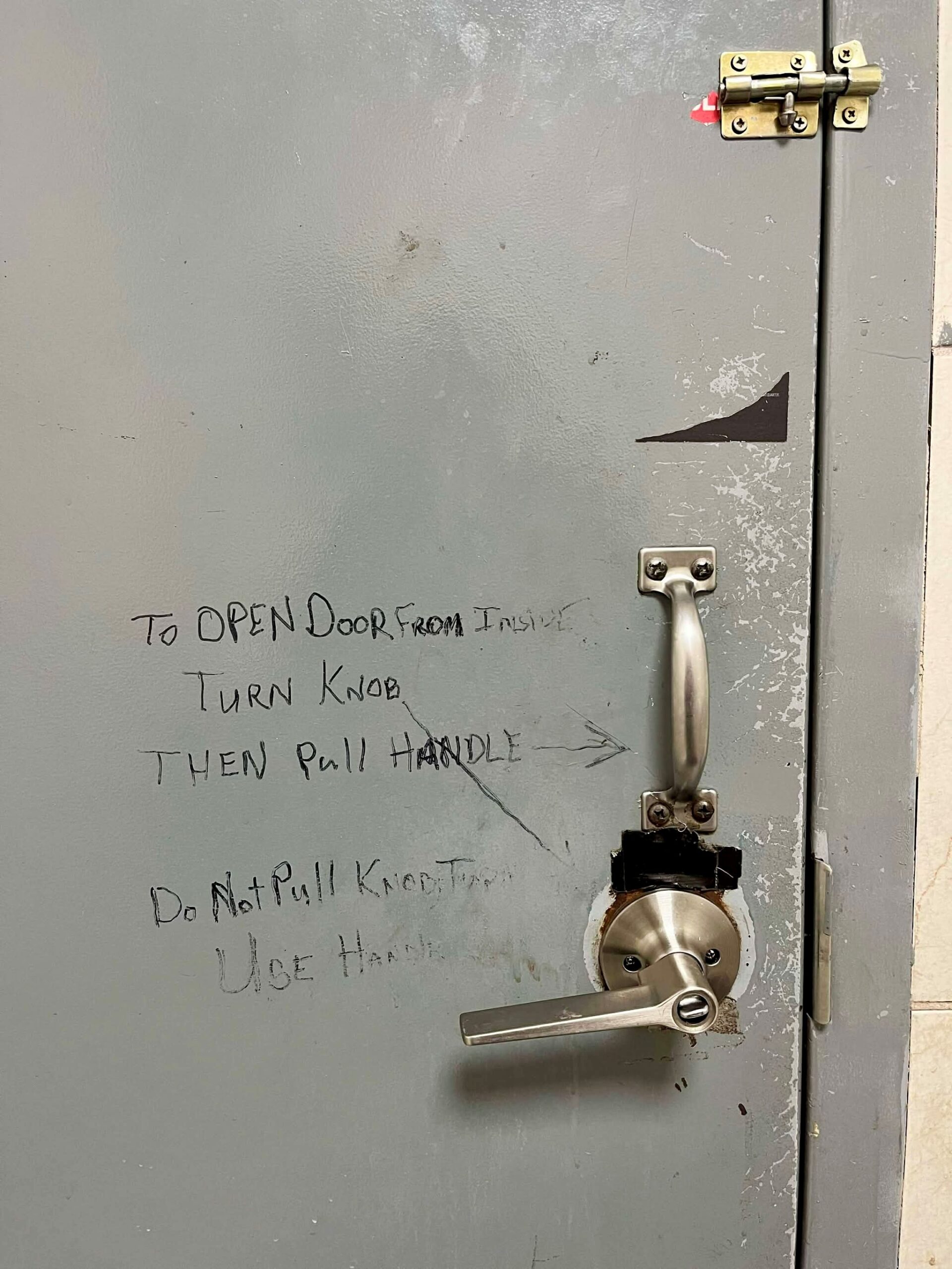 Catrinia Molitor sent me today’s Wordless Wednesday photos, taken in two different gas stations. One is the ladies’ restroom and the other is the main entrance. #wordless!