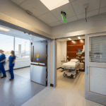 With some pre-planning, the location of the light can be coordinated with the location of the panic hardware, or a midrail can be used to accommodate the hardware. There are other advantages to midrails, which effectively divide a long light into two lights – one above and one below the hardware, but sometimes this isn’t caught until it’s too late.