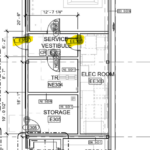 Today's question is whether one or both of the highlighted doors on this partial plan require panic hardware in order to comply with the IBC or NFPA 70. If you have info to share, please leave a comment!